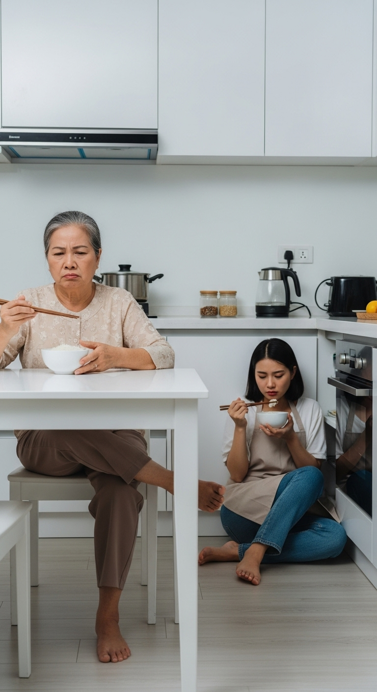 – “Mẹ ăn trên, chị ngồi dưới. Nhà tôi có trên dưới rạch ròi. Quê mà muốn ngồi chung à?”