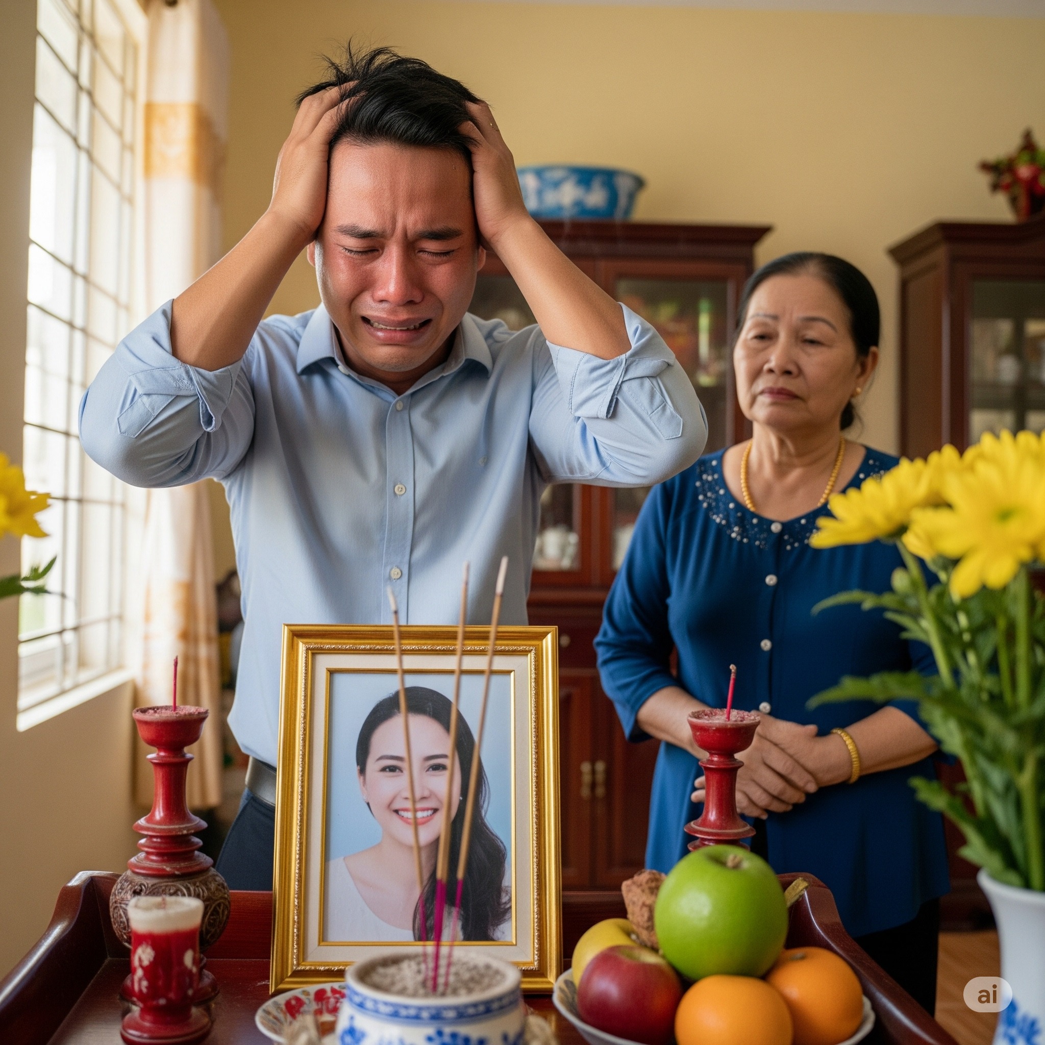 Tôi bước vào, ngôi nhà vẫn quen thuộc, chỉ có không khí lặng lẽ khác thường. Trong phòng khách, trên bàn đặt một tấm ảnh Lan, khung viền phủ vải đen. Tôi sững người, tim như ngừng đập.