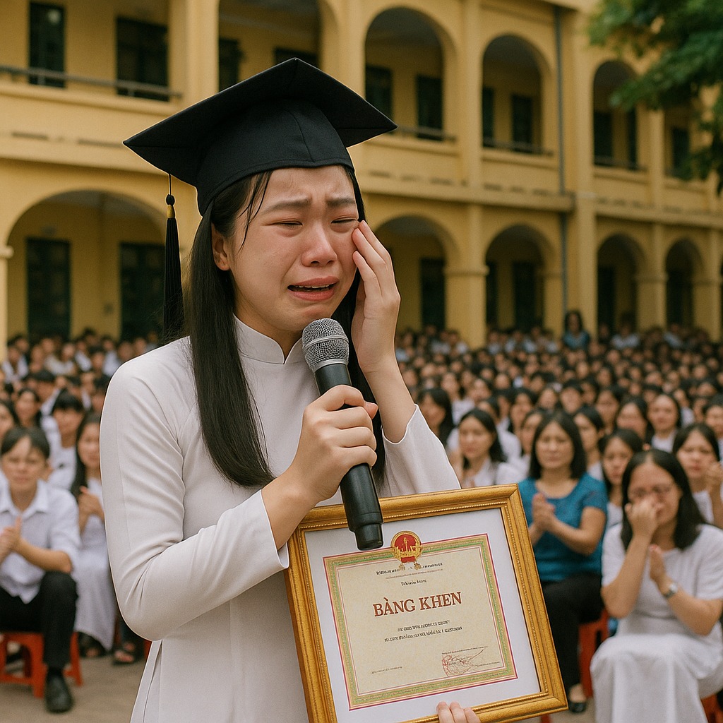 Cha n-hặt v-e ch-ai, mẹ không có, bị bạn bè x-a lá-nh . Ngày nhận bằng khen, cô học sinh đã phát biểu một câu c-hí mạ-ng khiến cả trường sử-ng s-ốt, v-ỡ ò-a cả-
